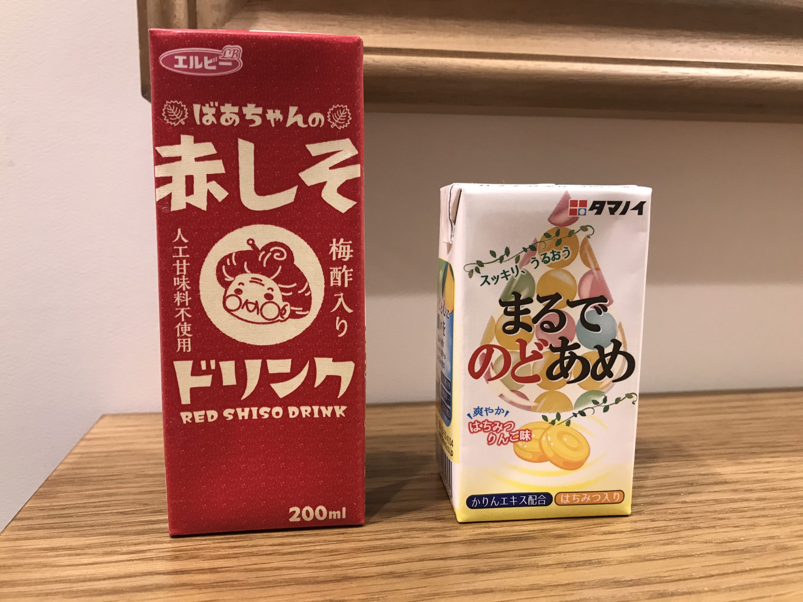 のどあめドリンクは喉痛い時、赤しそドリンクは疲れてるとき?に飲もうー。