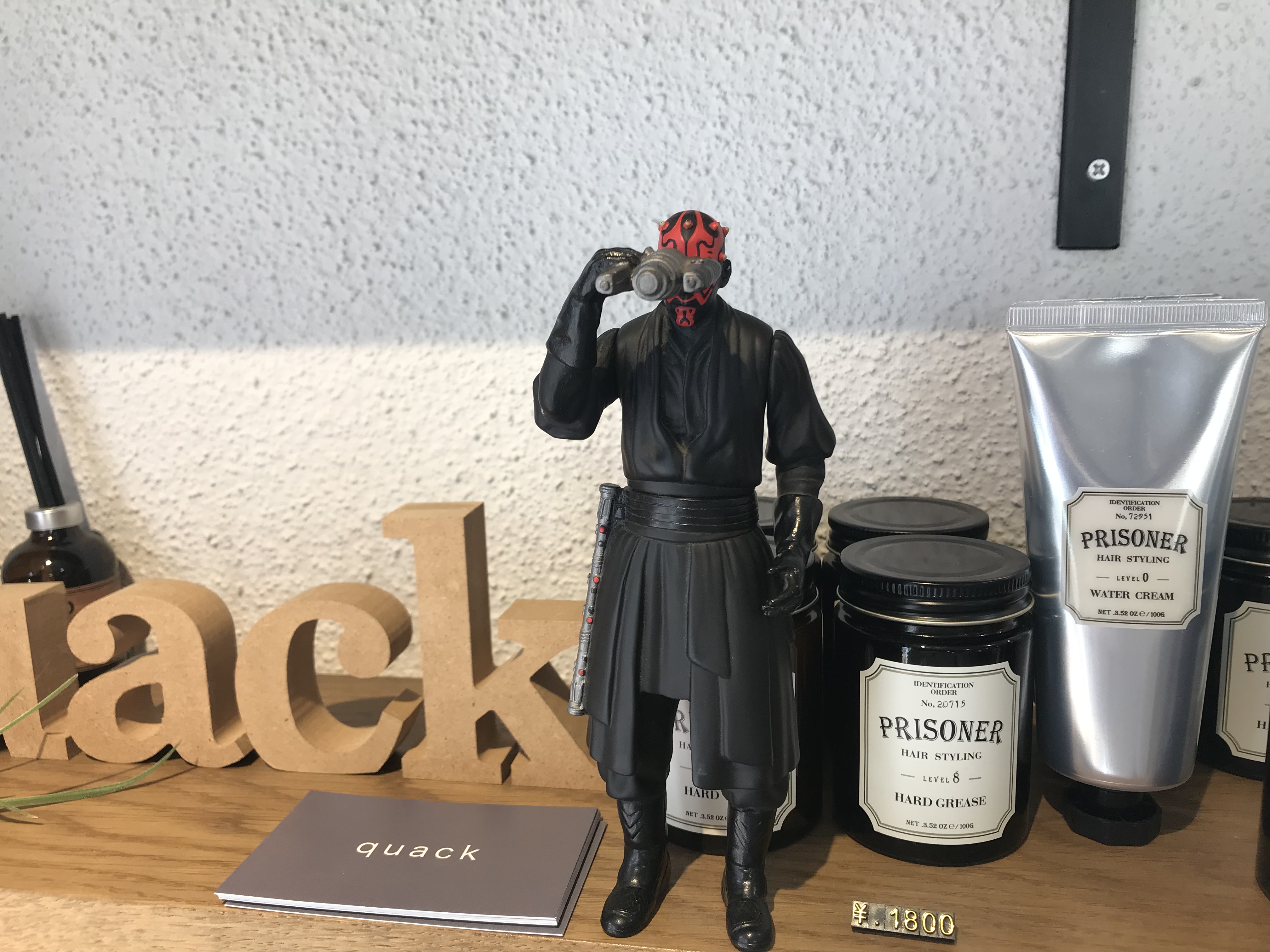 quackには色々な方からいただいたスターウォーズグッズがあります。それをみて家にあったフィギュアをお祝いにと!もう6回目のご来店でのお祝いです。ありがたいです。