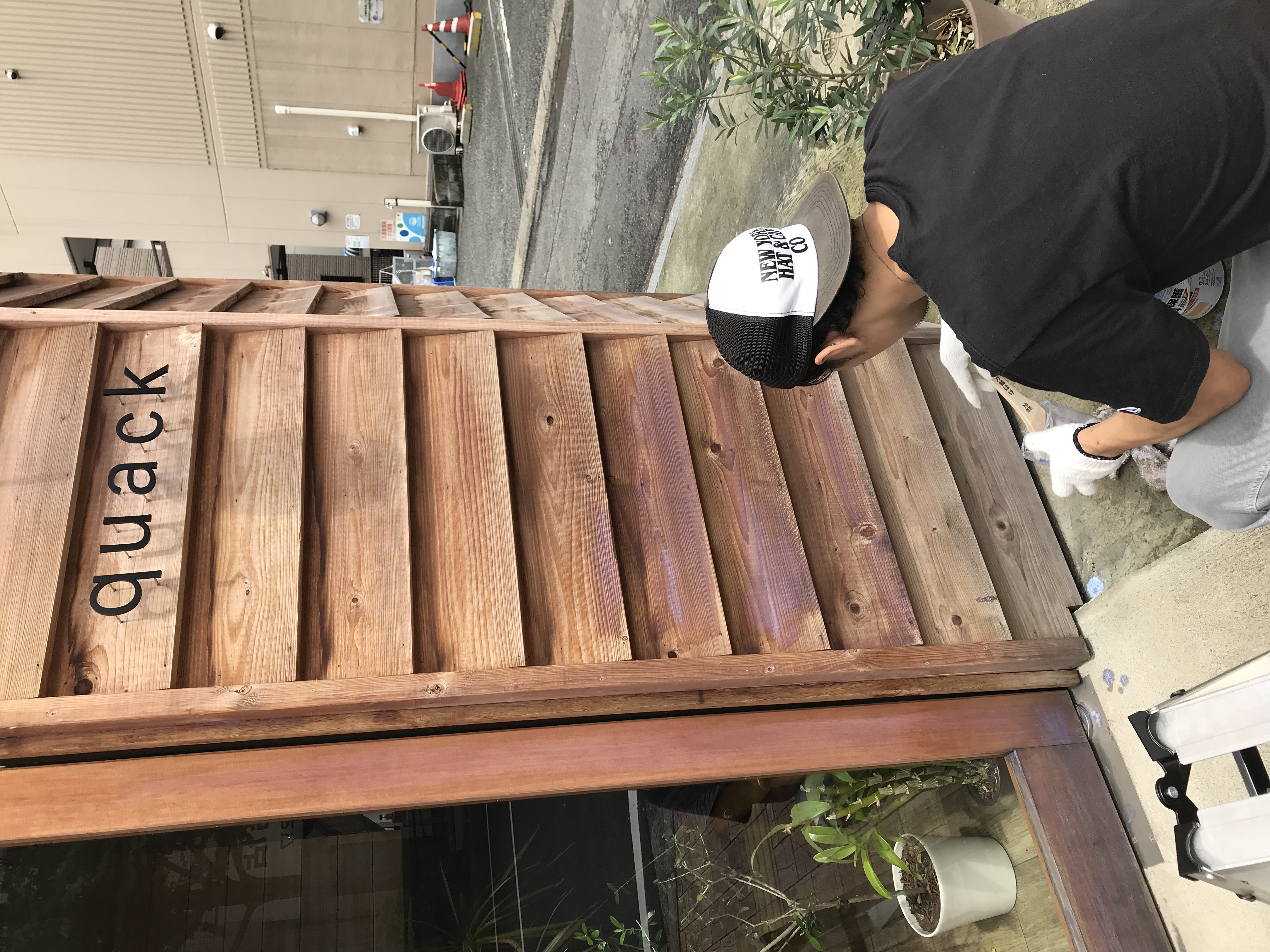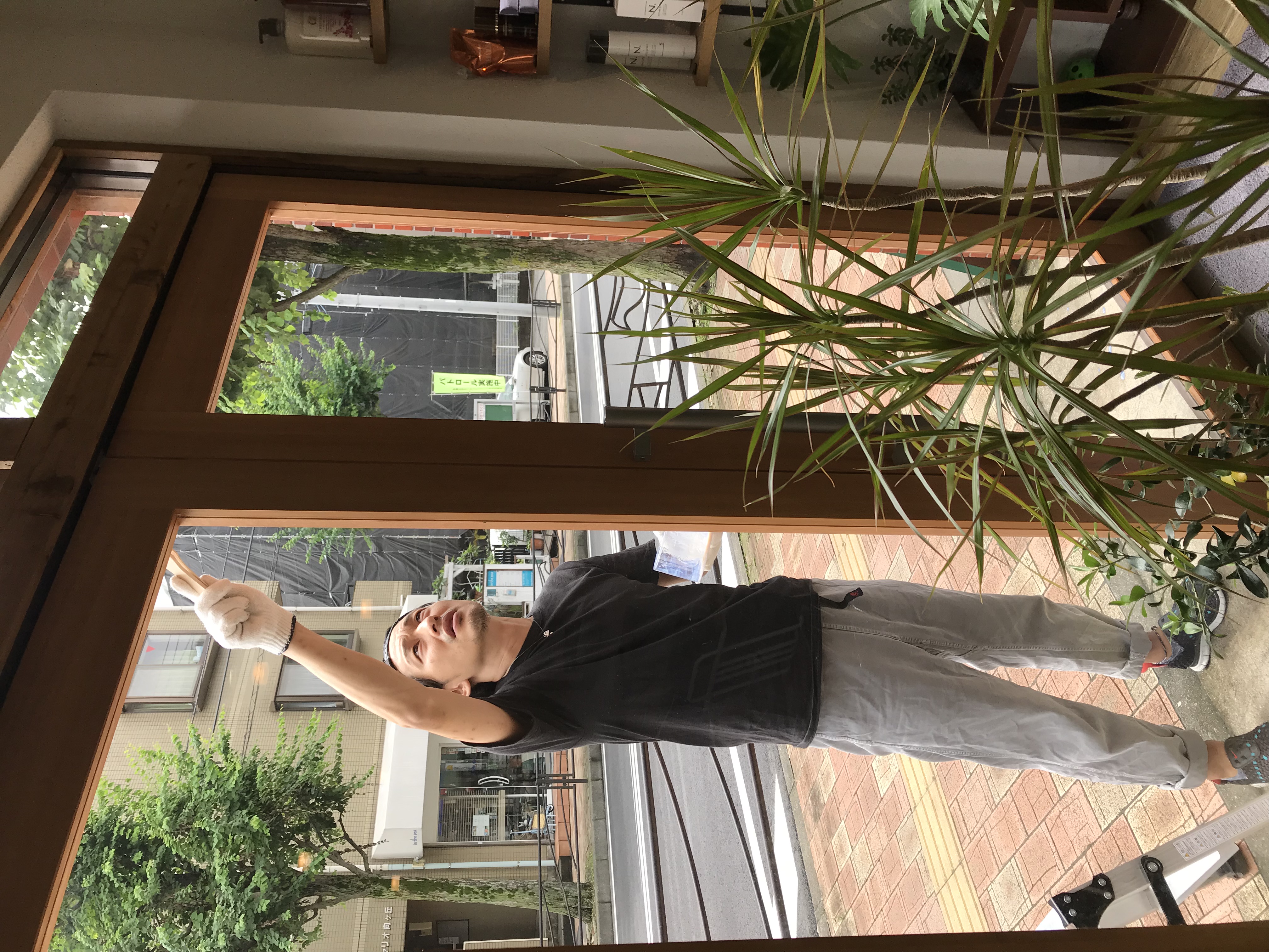 木にニスを。 先日大工さんのお客様に「そろそろ表の木にニス塗った方がいいよ」っとアドバイスをいただき、さっそくぬりぬり!! ヤッパリ1年半過ぎると木も日焼けと雨風でだいぶやられてました。 自分が表に木をはりたいとお願いして、はってもらったんだからニスくらいやらねば!!っとやっと天気がよく、時間が空いた時に! ヤッパリ木もニスを塗ると生きかえるなー! 2年くらいに一度はやろうと心に誓う山本でした。 コメントは受け付けていません。 夏期休暇のお知らせ。 スタッフTシャツついに完成!!